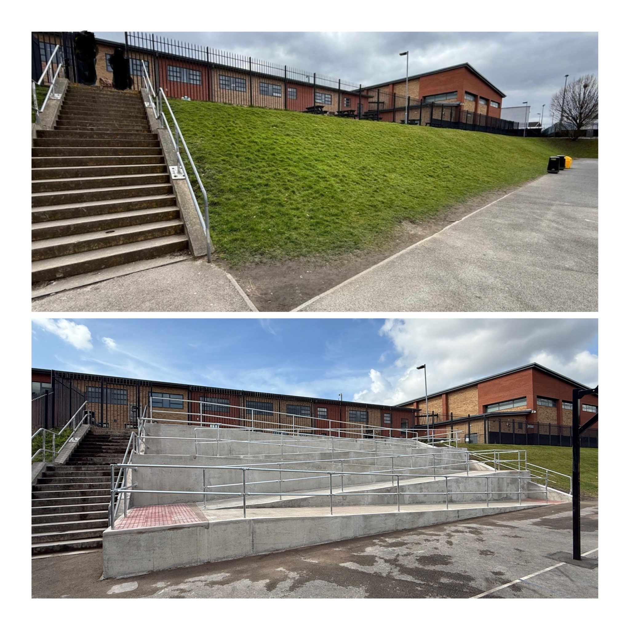 As part of the improvement works, we transformed a dated and unused storage area into a dry play space with the use of a simply designed bespoke canopy, a new scalloped fence and some non-slip GRP covers for the slippery wooden decking.